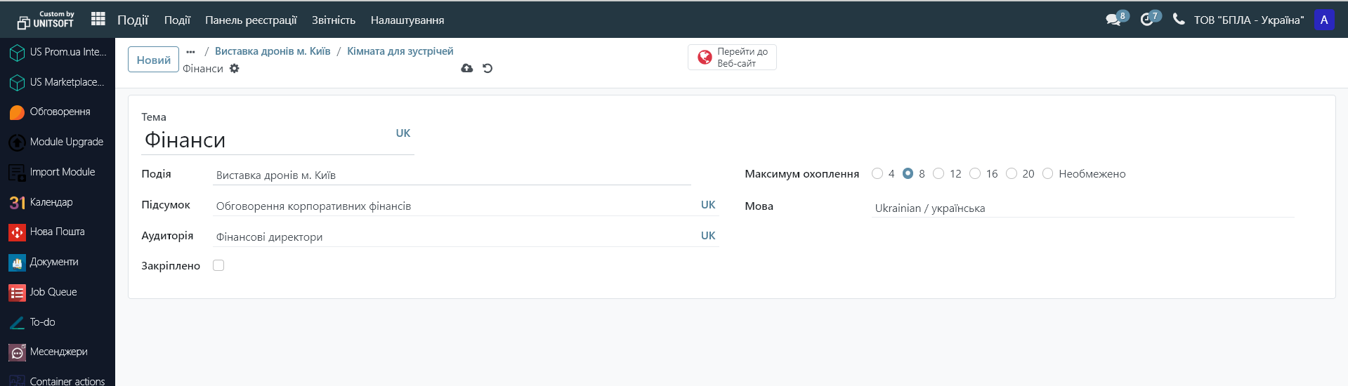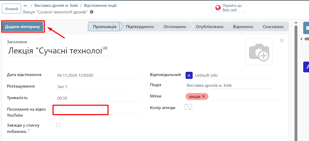 Заповніть всю необхідну інформацію. При потребі, опублікуйте підподії на сайті.