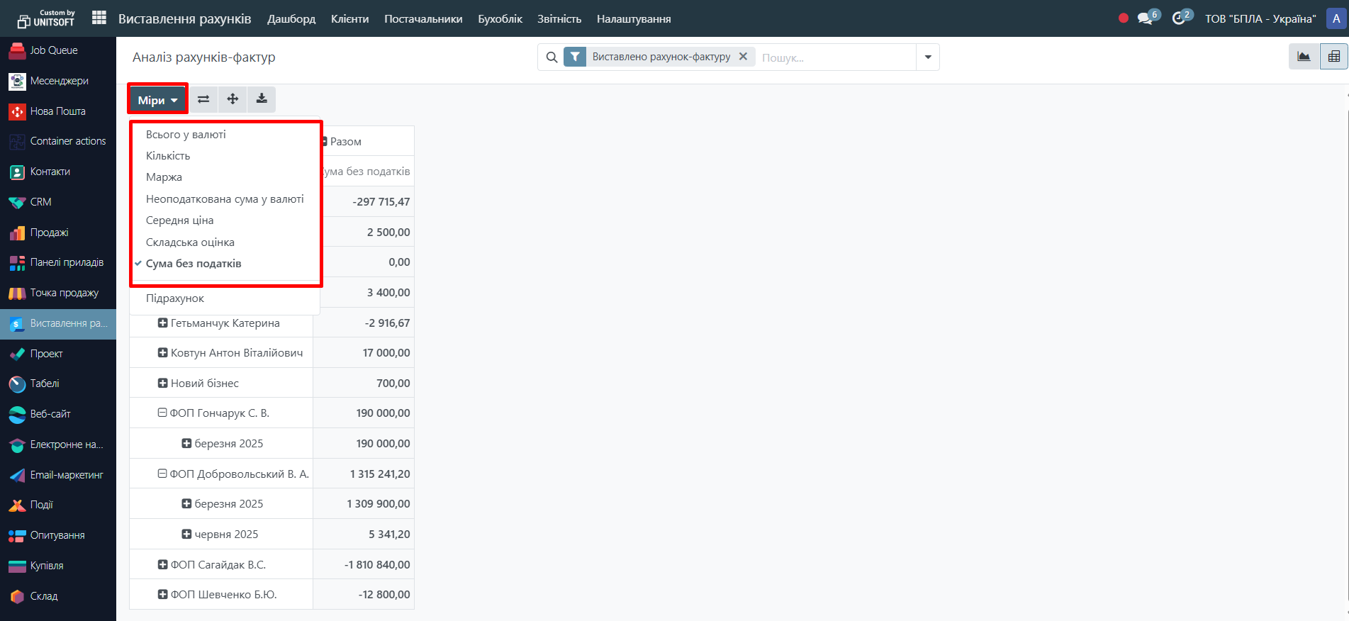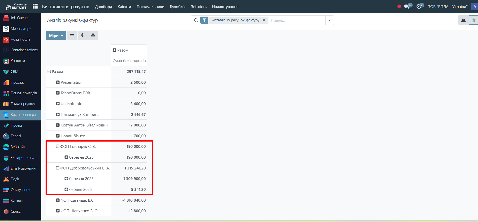 - швидко аналізувати суми за періодами, клієнтами, статусами тощо.