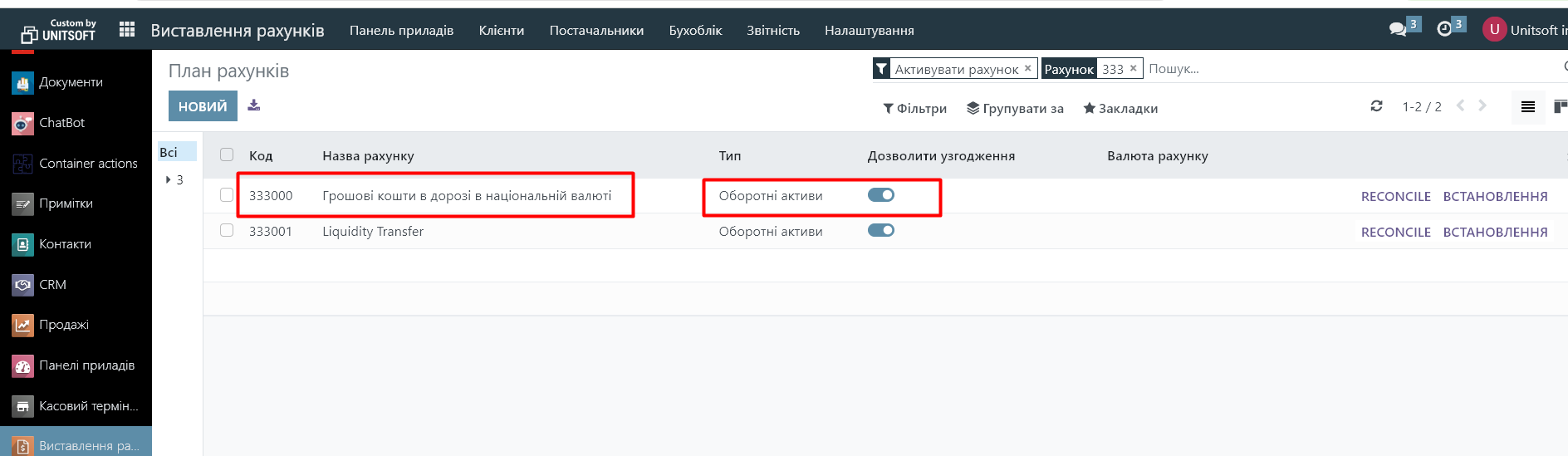 Шукаємо в переліку 333000 рахунок. Змінюємо для нього тип на «Оборотні активи» та ставимо відмітку «Дозволити узгодження»: