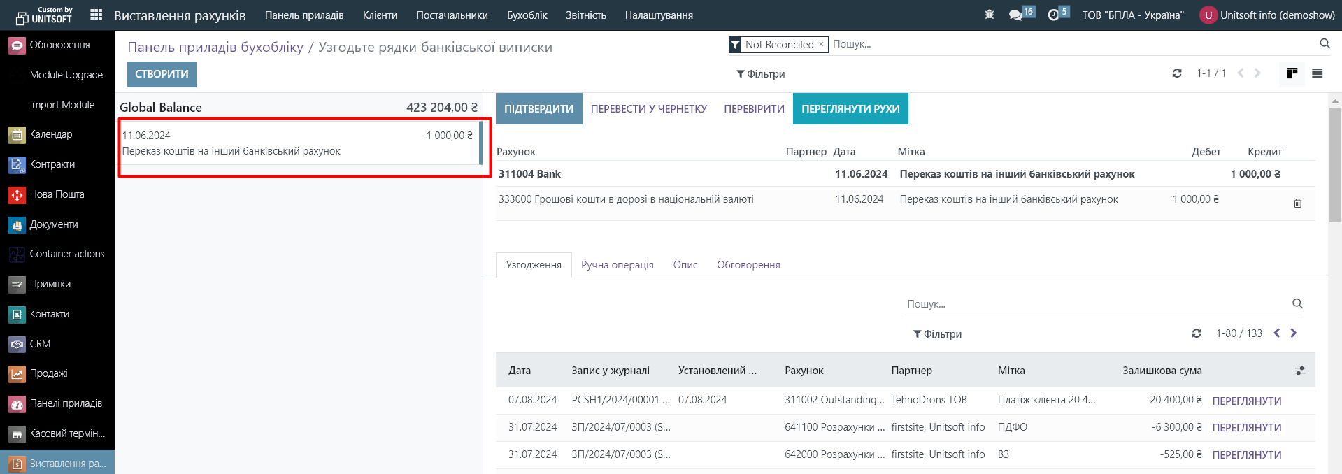 У новому вікні натискаємо на платіж, по якому плануємо провести узгодження (на створене списання з банківського рахунку):