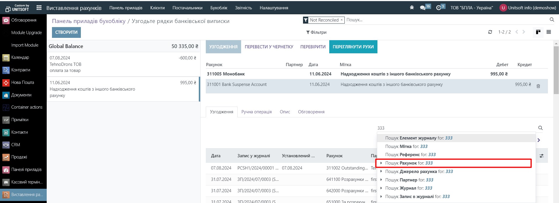 У рядку пошуку шукаємо записи з 333000 рахунком: