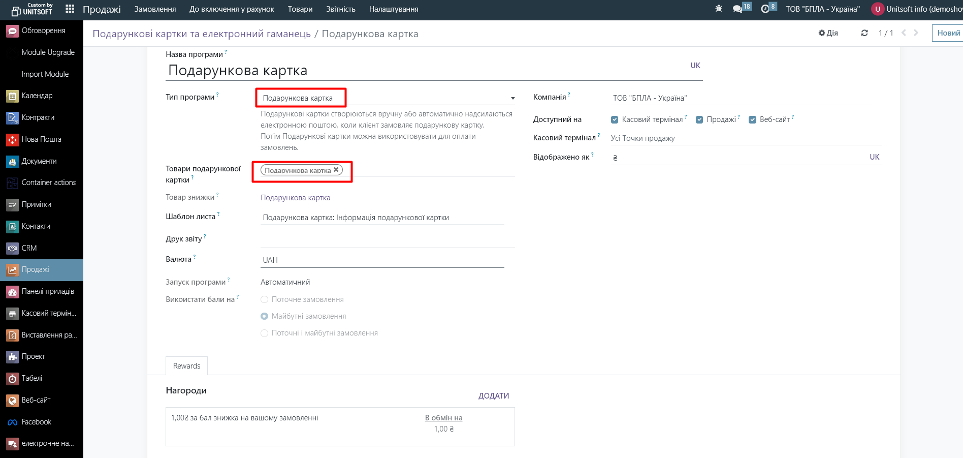 2. Створення програми лояльності "Подарунковий сертифікат"