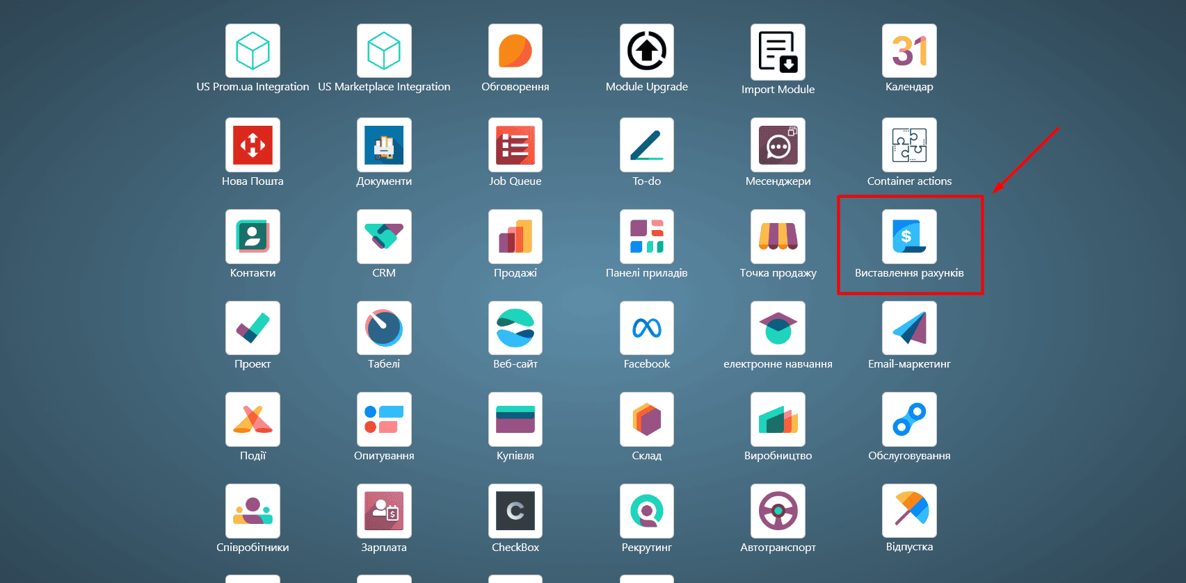 - Перейдіть у модуль «Виставлення рахунків».