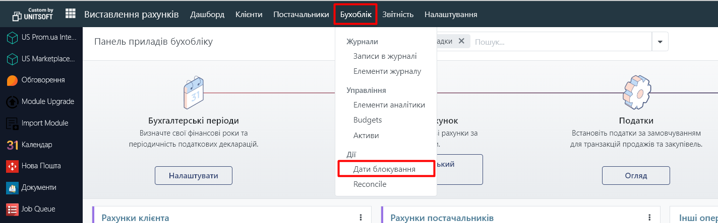 2. Оберіть вкладку «Бухоблік» - «Дати блокування».
