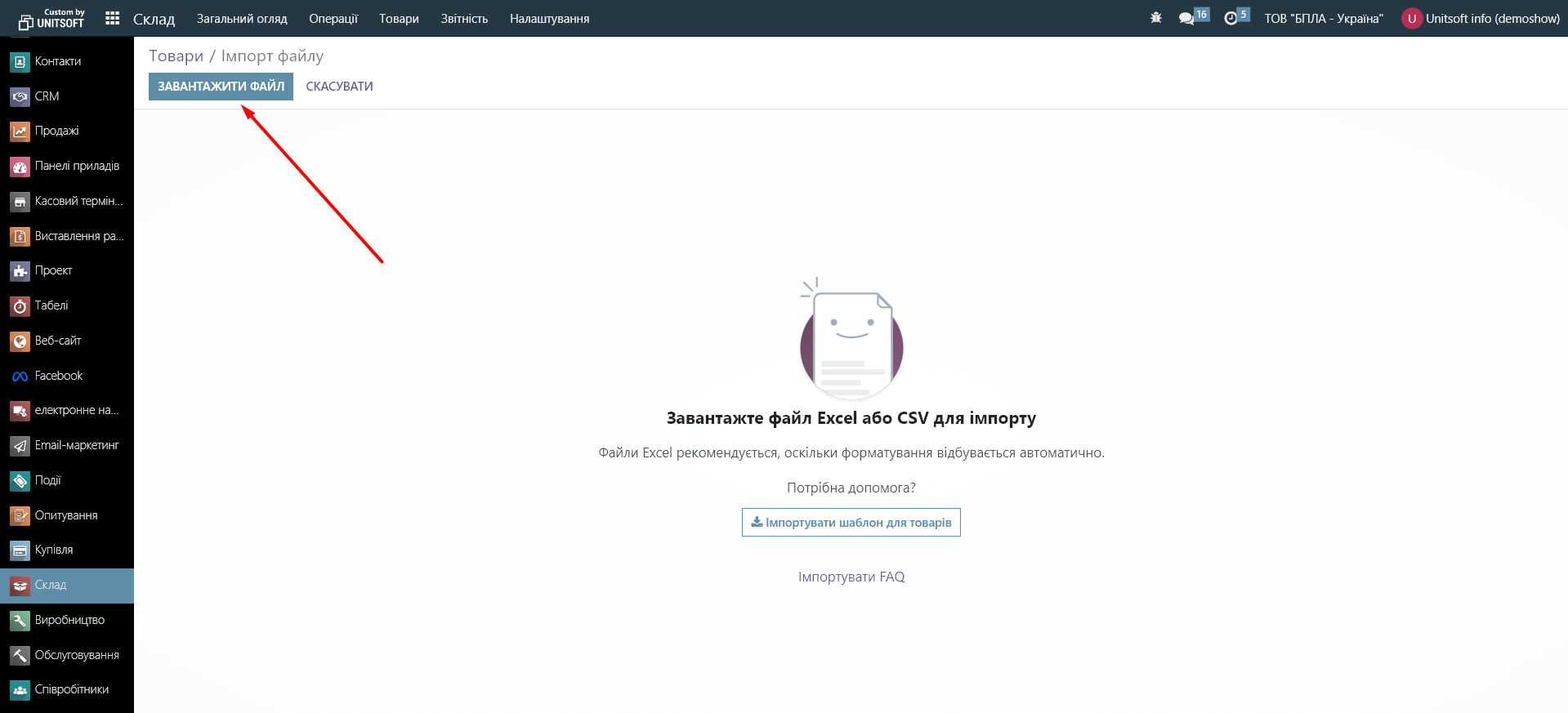 Далі натискаєте кнопку "Завантажити файл" і обираєте файл, по якому має відбутися завантаження даних: