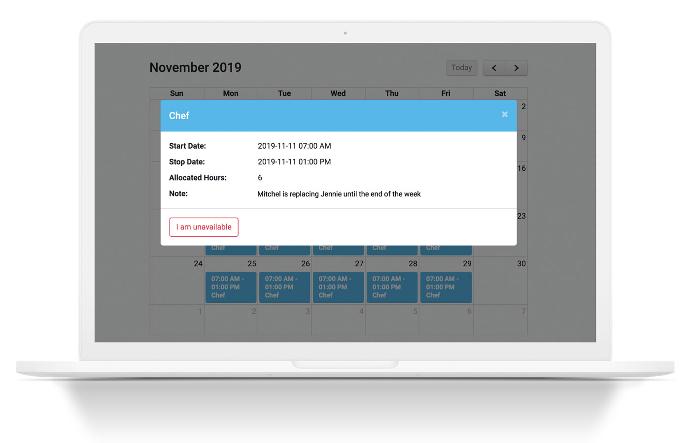 Ваші співробітники можуть зручно переглядати свої графіки через персональний портал. Крім того, що вони мають чітке уявлення про свої зміни, вони також можуть забрати вільні зміни або зняти себе з чергування безпосередньо з комп'ютера або смартфона.