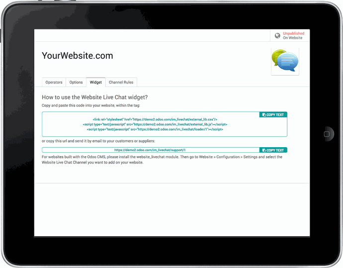 Ведіть розмови з клієнтами в Odoo, що дозволяє вам працювати в режимі багатозадачності, одночасно шукаючи важливу інформацію в бекендері. Отримуйте доступ до всієї необхідної інформації одночасно, поки вікно розмови відкрите, що дозволить вам надавати точні та вичерпні відповіді.